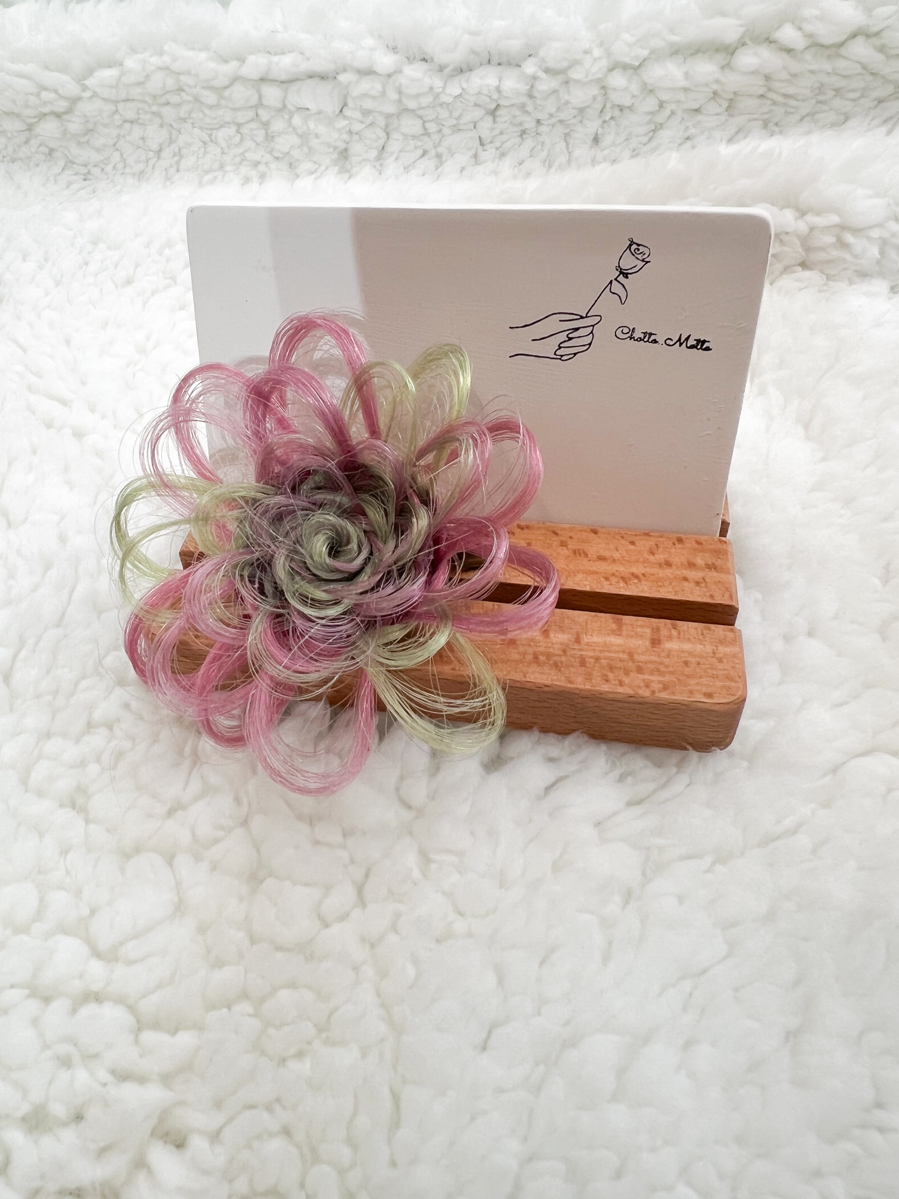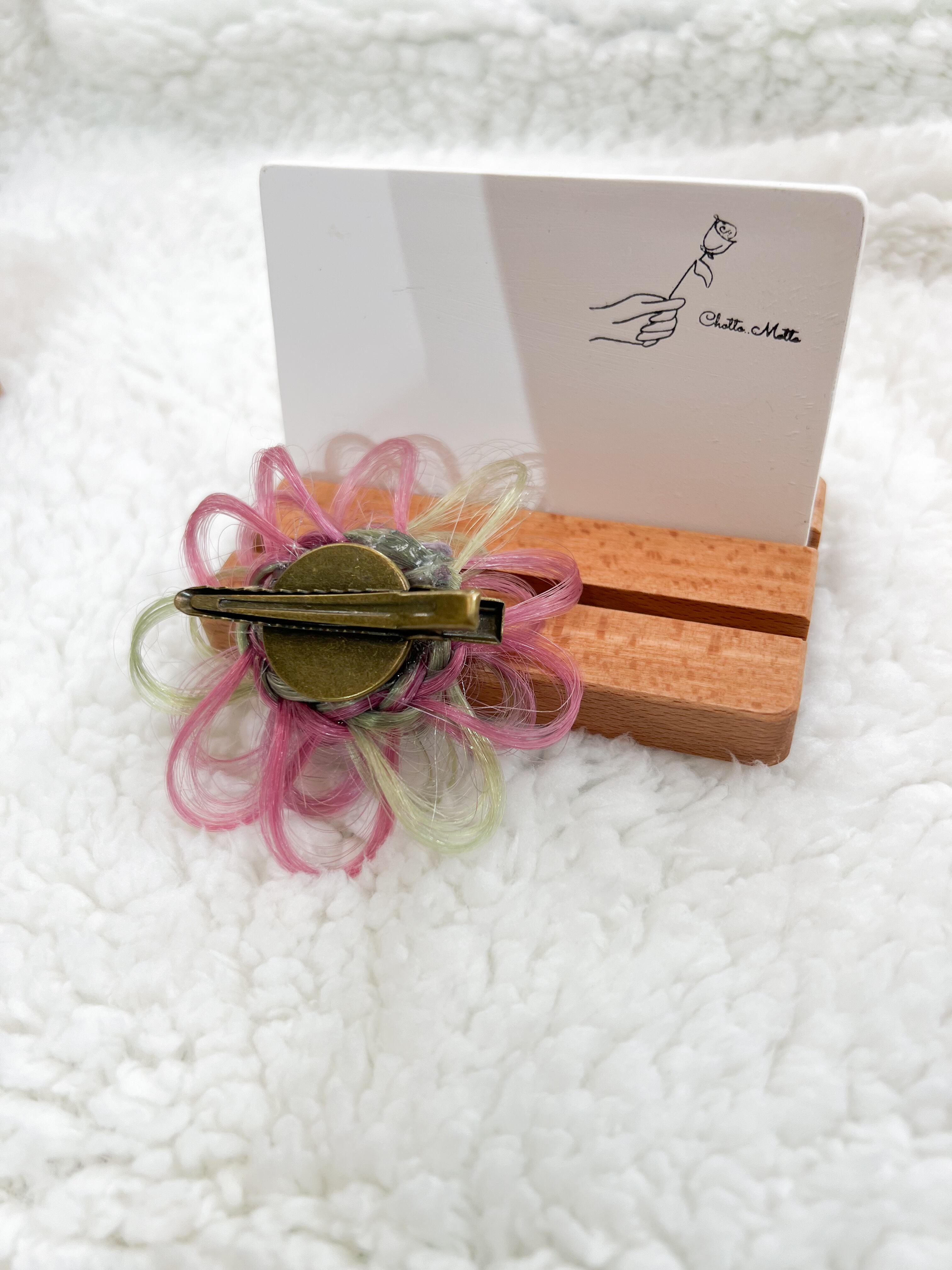 また髪本来の質感を保つ為にクリップ部分や根元は、接着を強く固めていますが花びら部分は、接着剤などでコーティングせず馴染みを良くするように作っています。