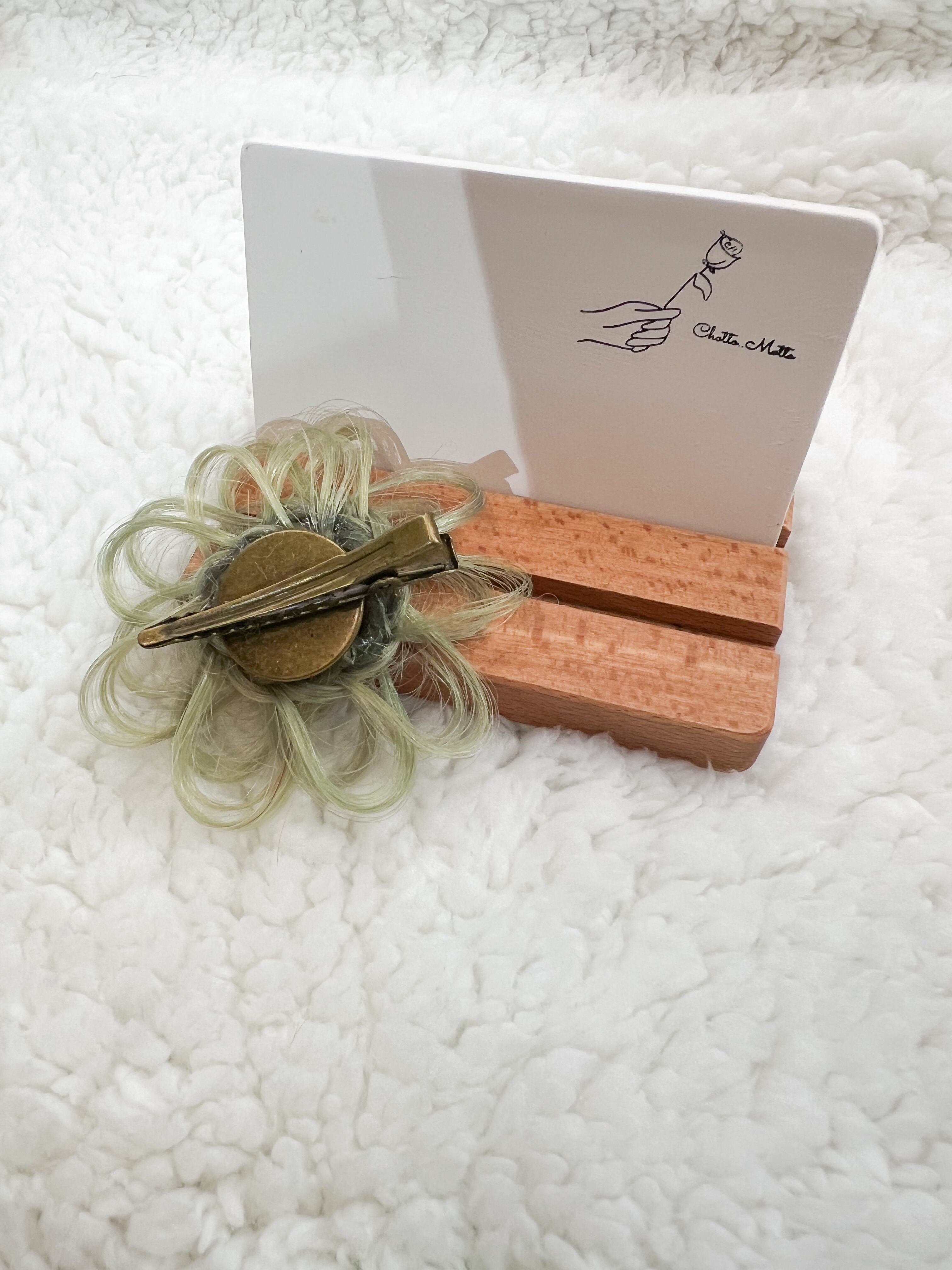 また髪本来の質感を保つ為にクリップ部分や根元は、接着を強く固めていますが花びら部分は、接着剤などでコーティングせず馴染みを良くするように作っています。