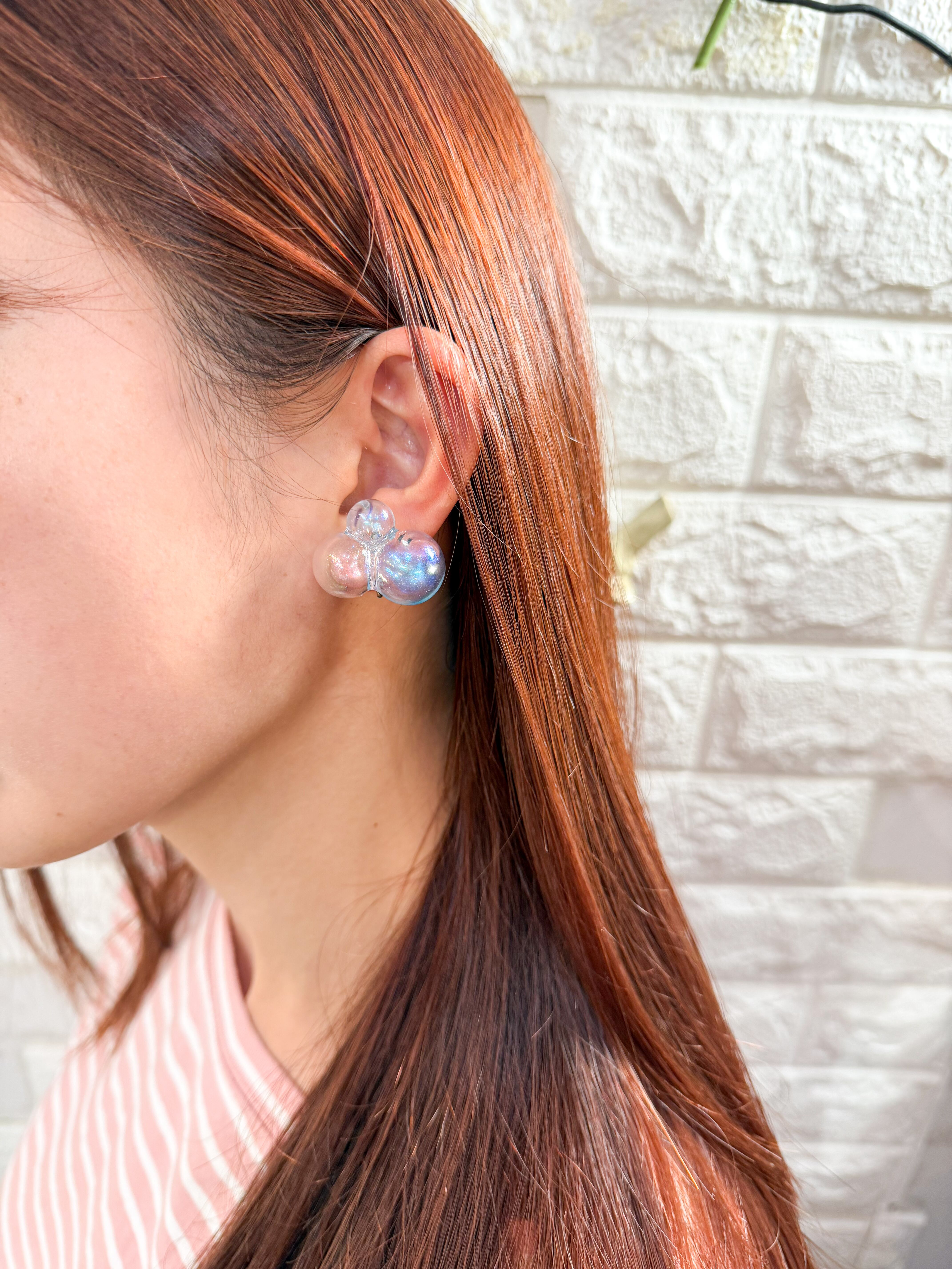 シャボン玉を再現したハンドメイドのイヤリング!