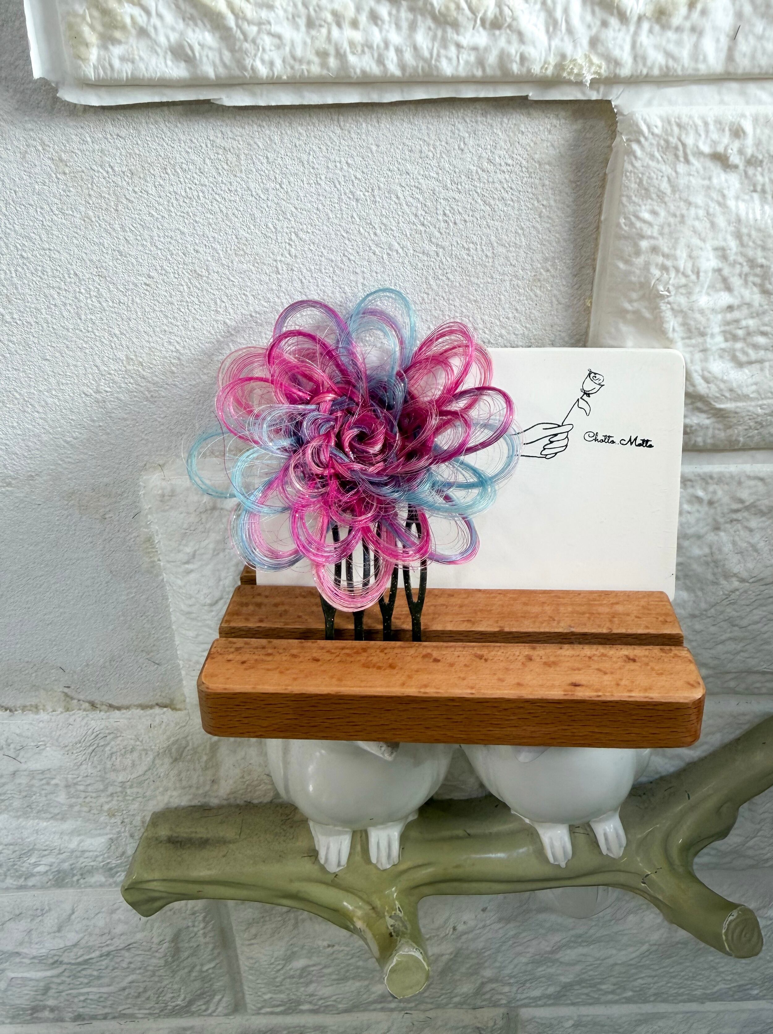 また髪本来の質感を保つ為にクリップ部分や根元は、接着を強く固めていますが花びら部分は、接着剤などでコーティングせず馴染みを良くするように作っています。