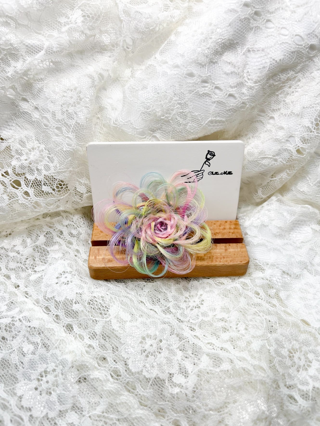 また髪本来の質感を保つ為にクリップ部分や根元は、接着を強く固めていますが花びら部分は、接着剤などでコーティングせず馴染みを良くするように作っています。